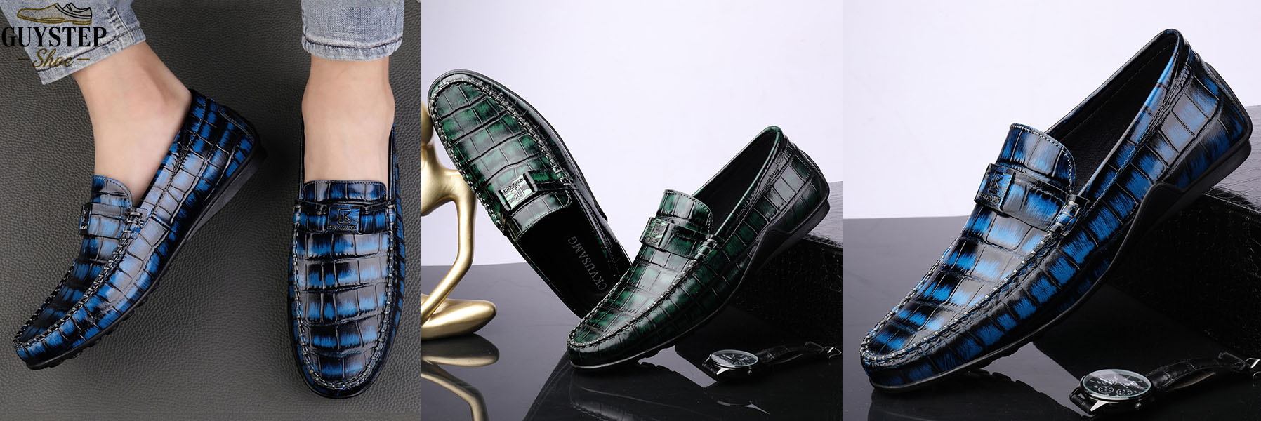 Gone are the days when men’s dress shoes were limited to black and brown. Deep  green and rich blue have emerged as go-to “bold neutrals”—hues that add personality without clashing with a curated wardrobe. These shades bring depth to any outfit, whether you’re dressing up for a meeting or keeping it laid-back for a weekend outing. Dark green loafers and blue croc-embossed styles are quickly becoming must-haves for guys who want to stand out subtly.