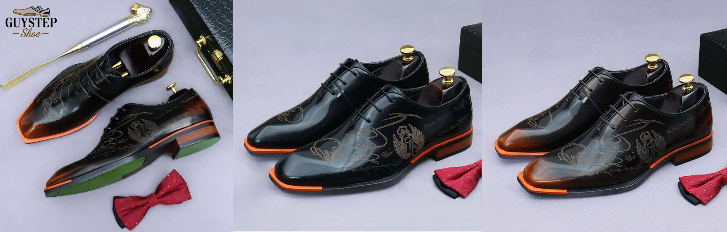 • Color Accents: The vibrant orange trim along the sole and toe serves more than a decorative purpose—it introduces a statement color pop. This clever touch bridges classic black dress shoes with avant-garde style, ideal for men who wish to stand out at galas or creative industry events.