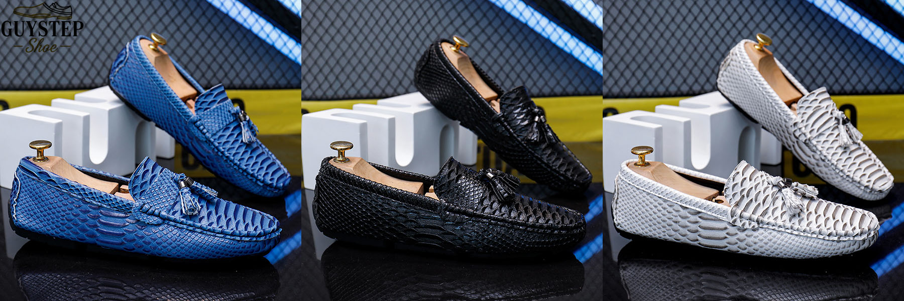 Offered in five hues, these loafers blend wardrobe-friendly loafers hues (black, white) and statement color men’s footwear (orange, red, blue). Black and white work seamlessly with everything from denim to tailored chinos, fitting the “one-shoe-many-outfits” practicality. The bolder shades, meanwhile, cater to those who want to inject vibrancy into their looks—perfect for adding a pop of color to neutral ensembles, with the snakeskin texture adding an extra layer of sophistication.