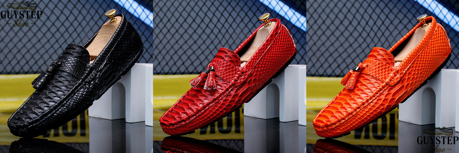 What makes these loafers indispensable is their status as transitional men’s loafers. Pair the bold orange snakeskin style with dark jeans and a tee for weekend brunch; swap in the black snakeskin-textured pair with a light blazer for a semi-formal coffee meeting. They fit the cross-occasion men’s footwear trend—proving that one shoe can work for both relaxed and put-together moments, with the snakeskin texture elevating every look.