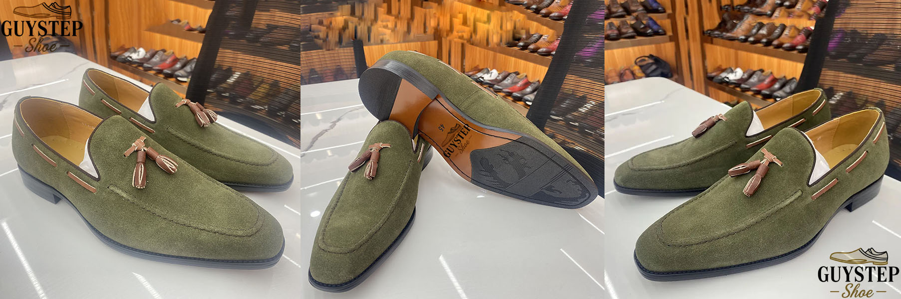 There’s something undeniably captivating about a pair of tassel loafers that blend vintage charm with modern sensibility. The olive-green suede pair here is a prime example, proving that loafers aren’t just a passing trend but a timeless category in men’s footwear. With their tassel detailing and rich suede texture, they tap into the enduring love for retro-inspired designs while fitting seamlessly into contemporary wardrobes.