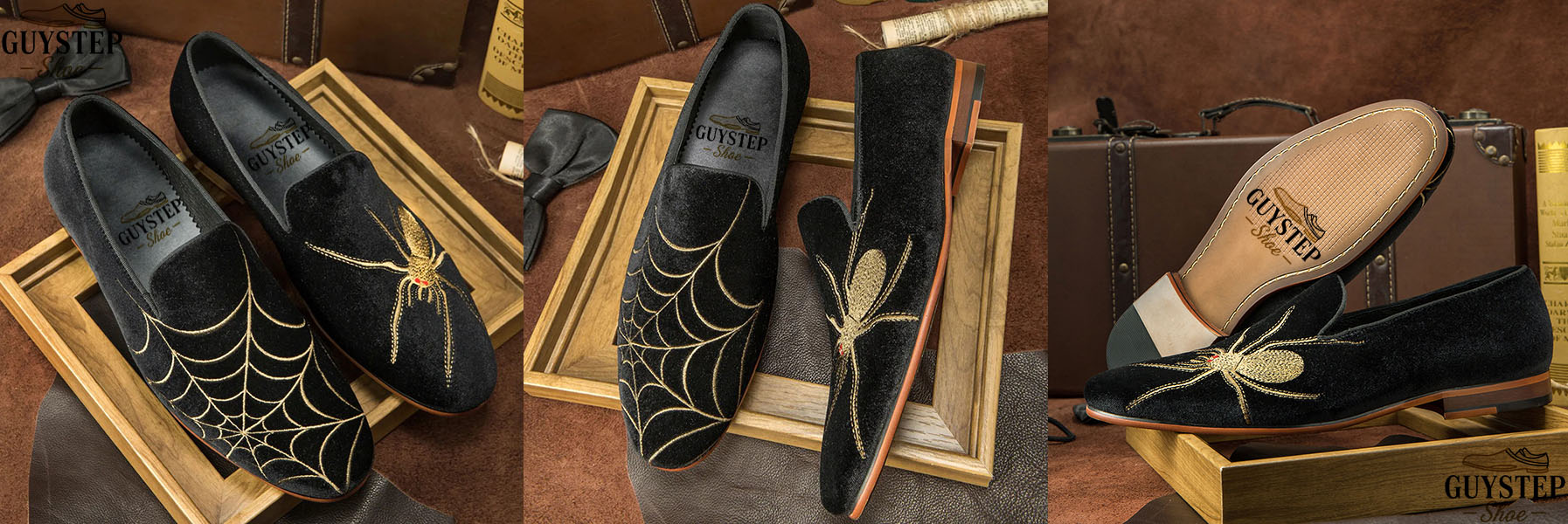 In 2025, men’s footwear is all about bold self-expression, and the spider-embroidered suede loafers are leading this audacious charge. Crafted from plush black suede and adorned with intricate gold spider and web embroidery, these loafers are not just shoes—they’re a declaration of style. They’re redefining the “luxury men's loafers” category, making “suede embroidered loafers men” a standout search term for fashion-forward gents who crave uniqueness.