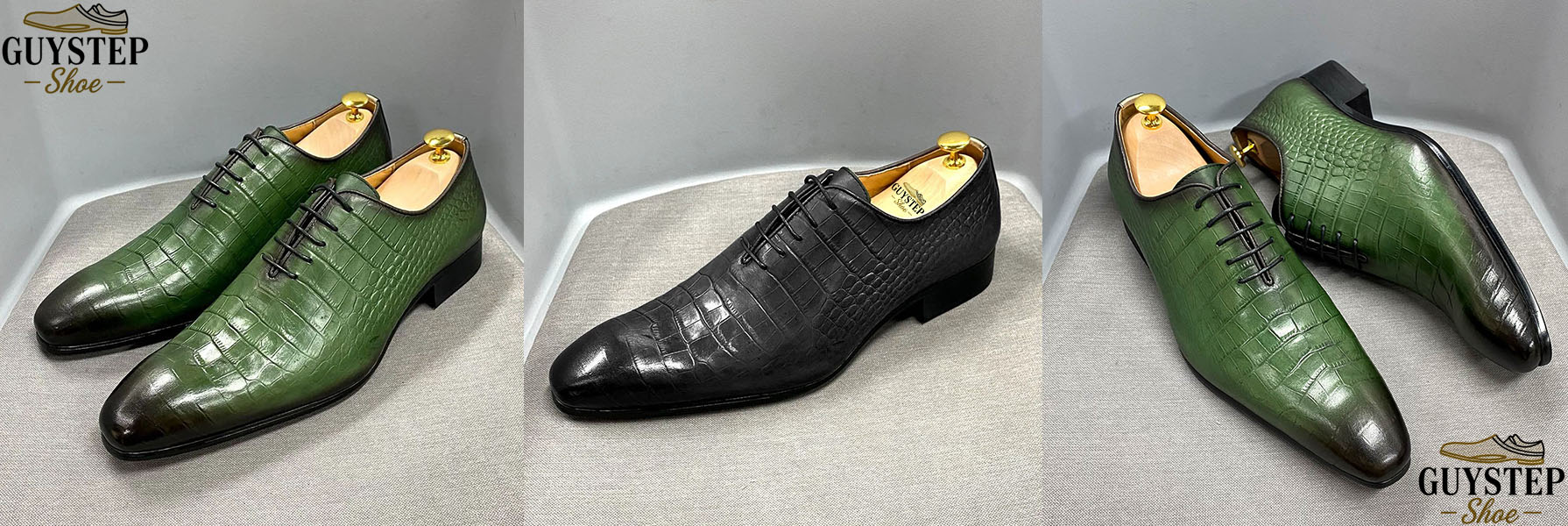 At the core of these crocodile-embossed dress shoes lies top-grain leather—the gold standard of luxury men’s footwear. This isn’t just any leather; it’s selected for its durability, softness, and ability to develop a rich patina over time. The intricate crocodile embossing isn’t a mere design—it’s a testament to how top-grain leather can be transformed into a canvas of exotic elegance. Whether in bold green or classic black, the leather’s quality ensures these shoes stand as a pinnacle of “handcrafted men’s dress shoes”, merging the allure of exotic textures with the reliability of premium material. For the discerning wearer, this is more than a shoe; it’s an investment in a material that ages gracefully, telling a story with every wear.