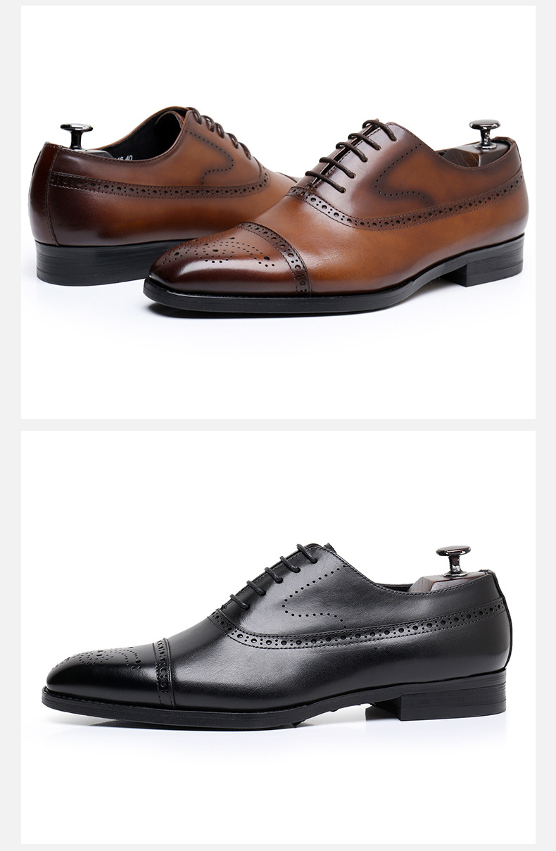 GUYSTEP-Men's Classic Brogue Hand-carved Pointed Toe Leather Shoes
