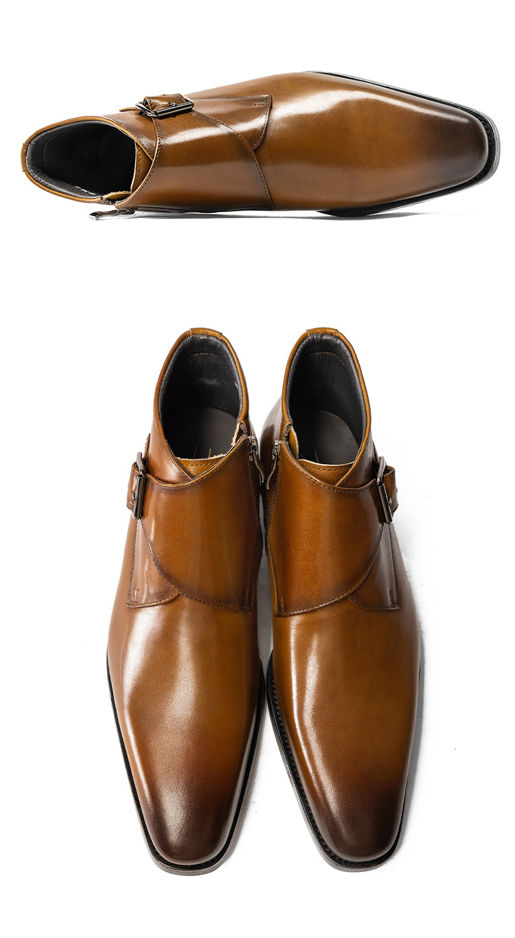 GUYSTEP™Men's Genuine Leather Square-Toe High-Top Monk Ankle Boots